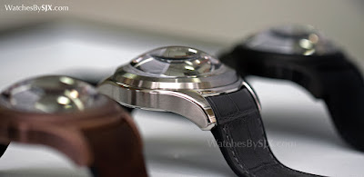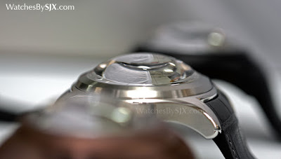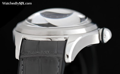 Das Comeback Obwohl 15 Jahre noch nicht so lange her ist, wurde die Bubble in der Baselworld 2015 als historische Neuauflage wieder eingeführt. Die Heritage Bubble ist größer als das Original, mit einem 47mm Gehäuse - groß, aber komfortabel angesichts der kurzen und gebogenen Laschen - das misst 18.8mm hoch. Fast die halbe Höhe, ein voller 8mm, ist der Saphirglas.
