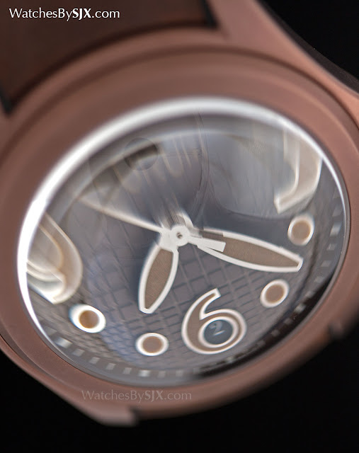 Wahrscheinlich die teuerste Komponente der Uhr, die Dicke des Kristalls vergrößert die Mitte des Zifferblatts, während die Kanten verzerren. Und es macht das Lesen der Zeit aus einem Winkel unmöglich. Die Effekte des Kristalls werden verwendet, um eine optische Täuschung auf den zwei limitierten Auflagen der Heritage Bubble zu schaffen: das Zifferblatt erscheint gewölbt, obwohl es eigentlich flach ist. Die Zifferblätter sind aus Messing und stempelt mit einem Schachbrett Guilloche mit Quadraten, die in der Größe in Richtung der Mitte des Zifferblatts zu erhöhen, die Verbesserung der optischen Effekt.